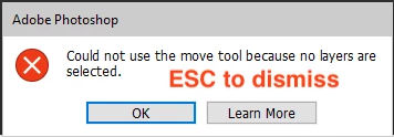 "Could not use the move tool because..." modal to accept (close/dismiss) with ESC key