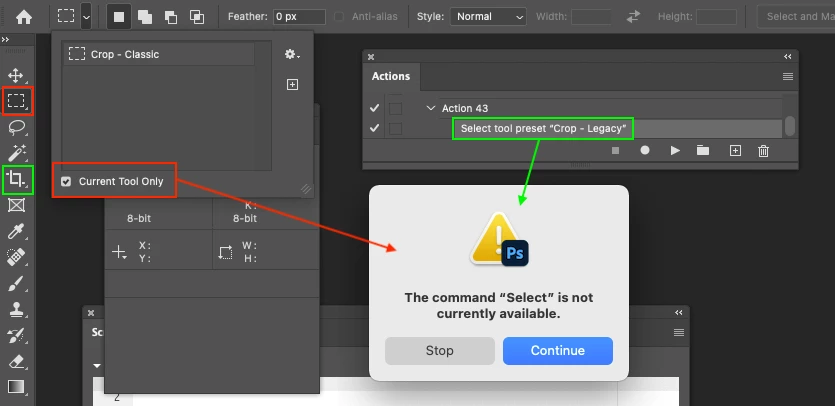 Would like ability to save tool type, brush size, opacity, flow, and select “Apply to All Layers” (or current layer, etc.) in an action. For example, when retouching and going through various actions (e.g. dodge and burn, frequency separation, even skin tone, blemish removal, etc.) I still have to manually apply various tool settings. [This even occurs when selecting “Allow Tool Recording” in actions menu].