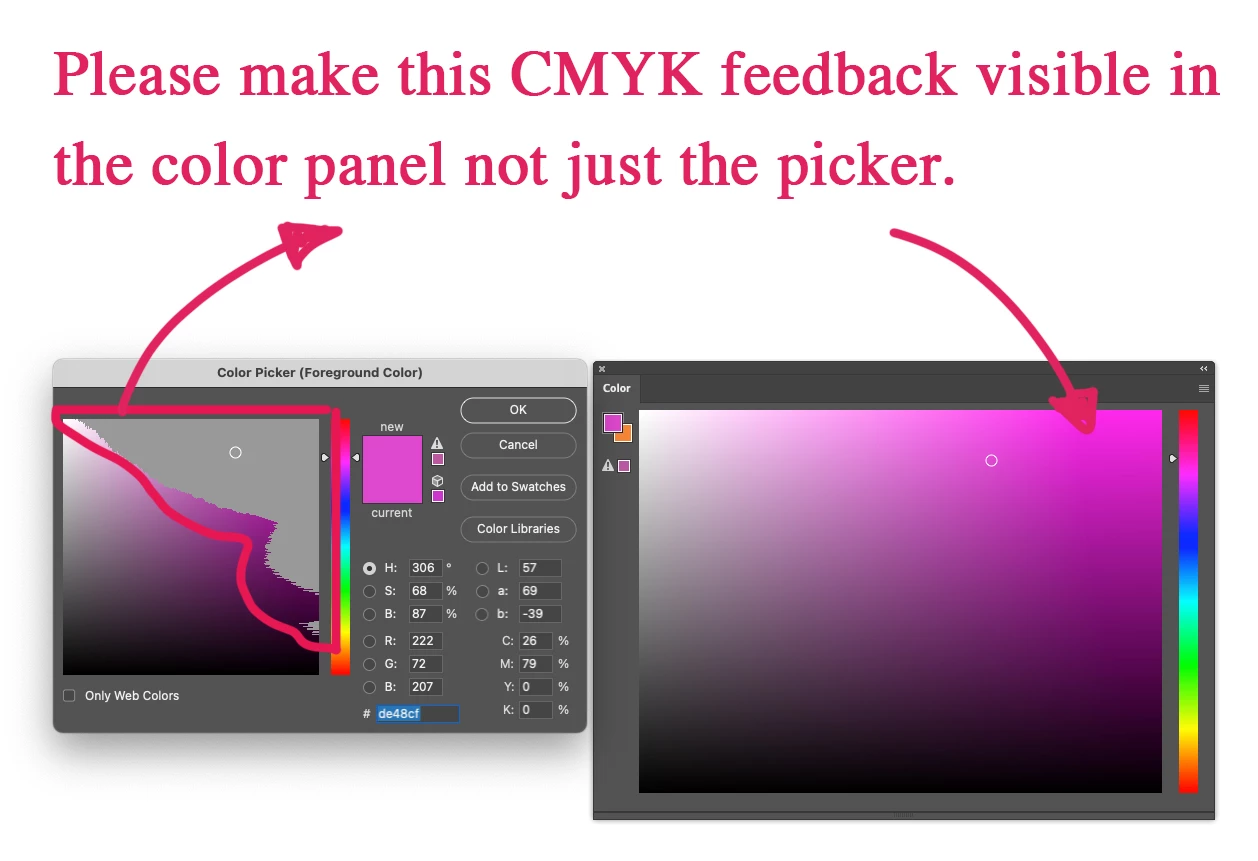 Feature Request - CMYK Spectrum in Color Panel not just Color Picker