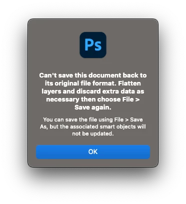 Whenever i drag a file from the finder and drop on photoshop, it creates a smart object and that's all well and good. BUT, if i try and edit that smart object, i need to flatten the image before saving it.