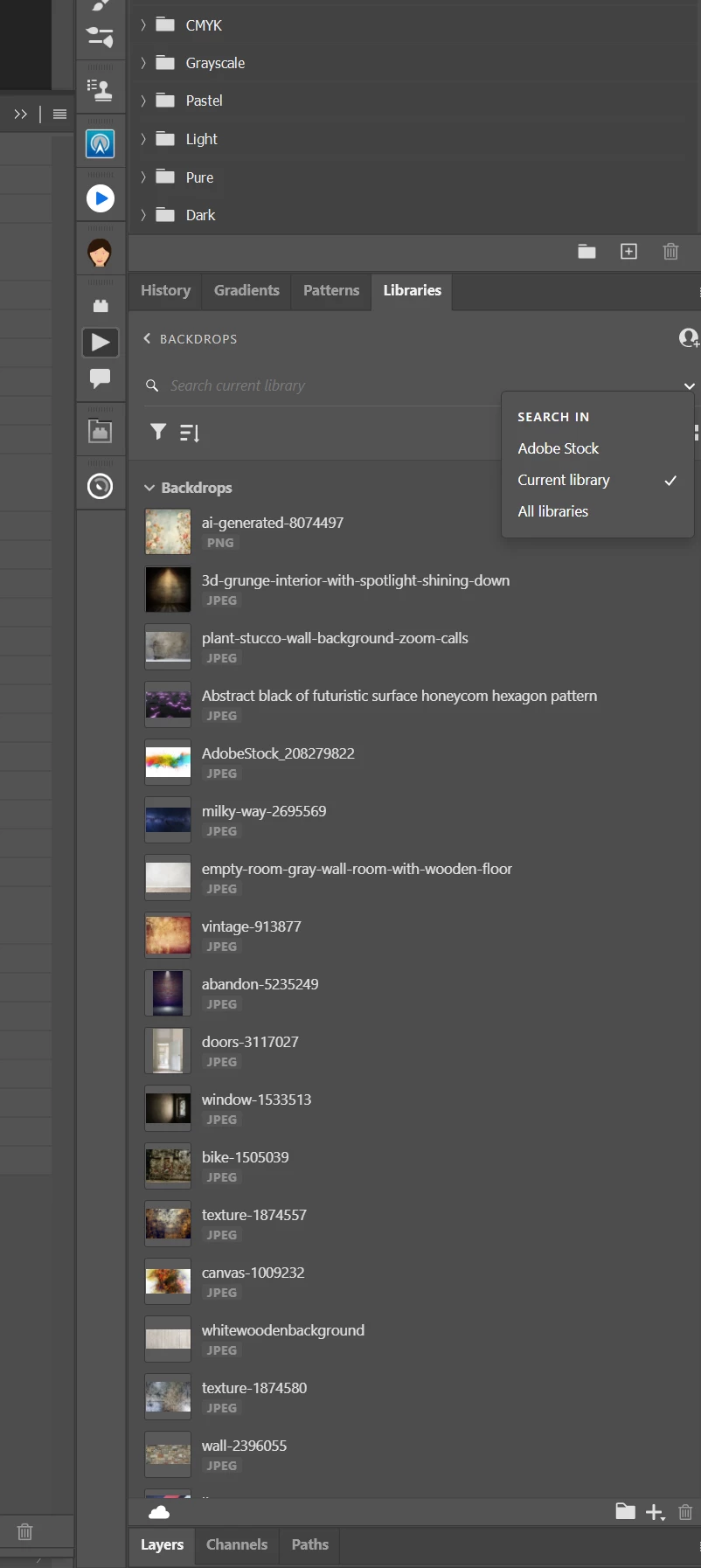 The Libraries tab was a great setup for managing my assets (overlays, backgrounds, etc.) but I used up the 20GB cloud space in a few days. I have all my assets stored locally, and would like to be able to see them in the same format as the libraries tab to organize, and find what I need quickly, without having to leave Photoshop.