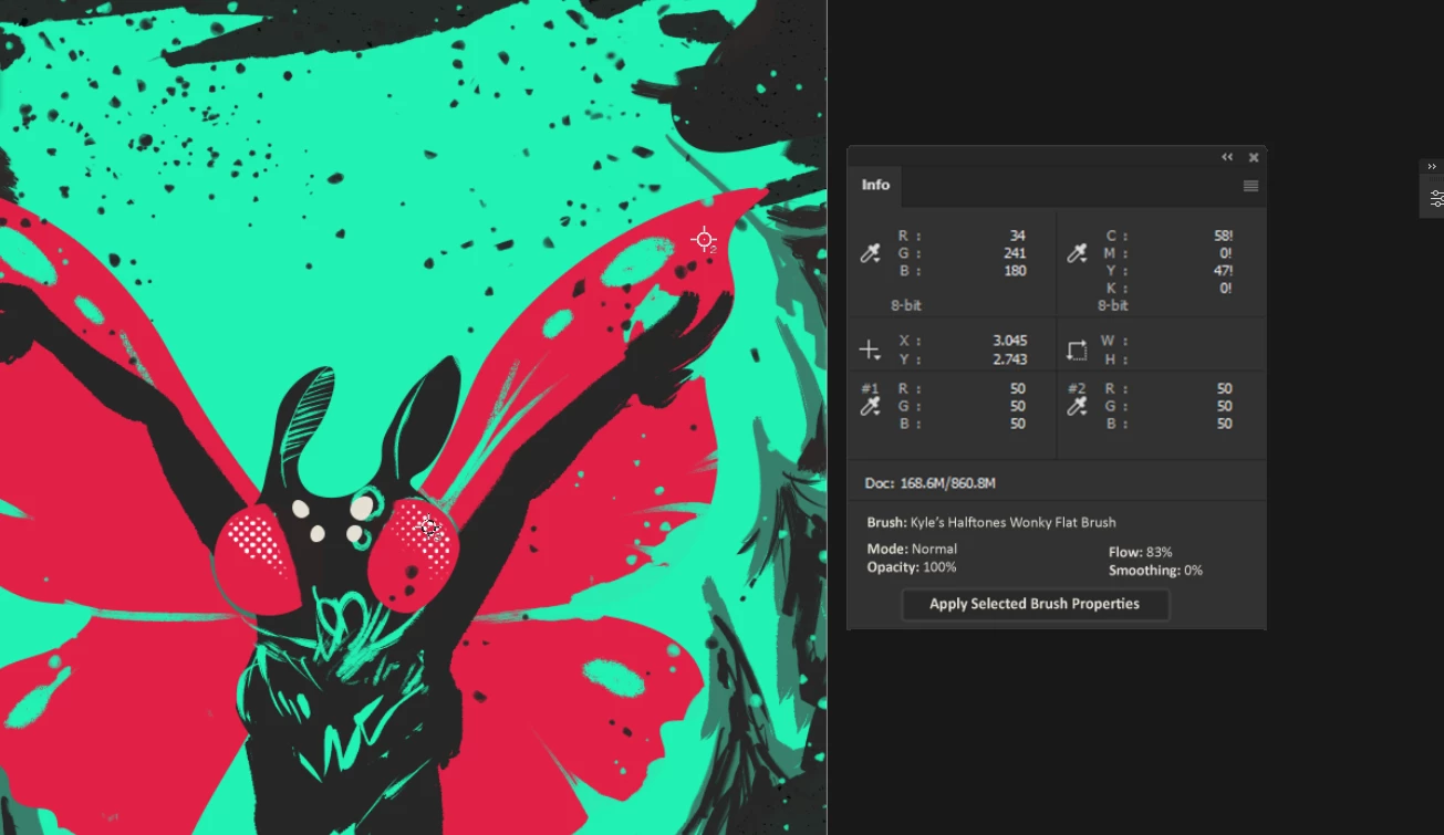 An addition to the eyedropper tool's abilities where you click on an area and it shows metadata of the name of the brush that was used, size, and opacity.
