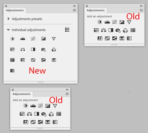 After updating 24.5, the Adjustments panel automatically changed to a new mode after restartup.