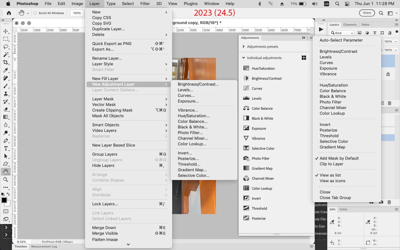 just delete or move this folder to other place :Adobe Photoshop 2023\Required\UXP\com.adobe.photoshop.adjustments-panel