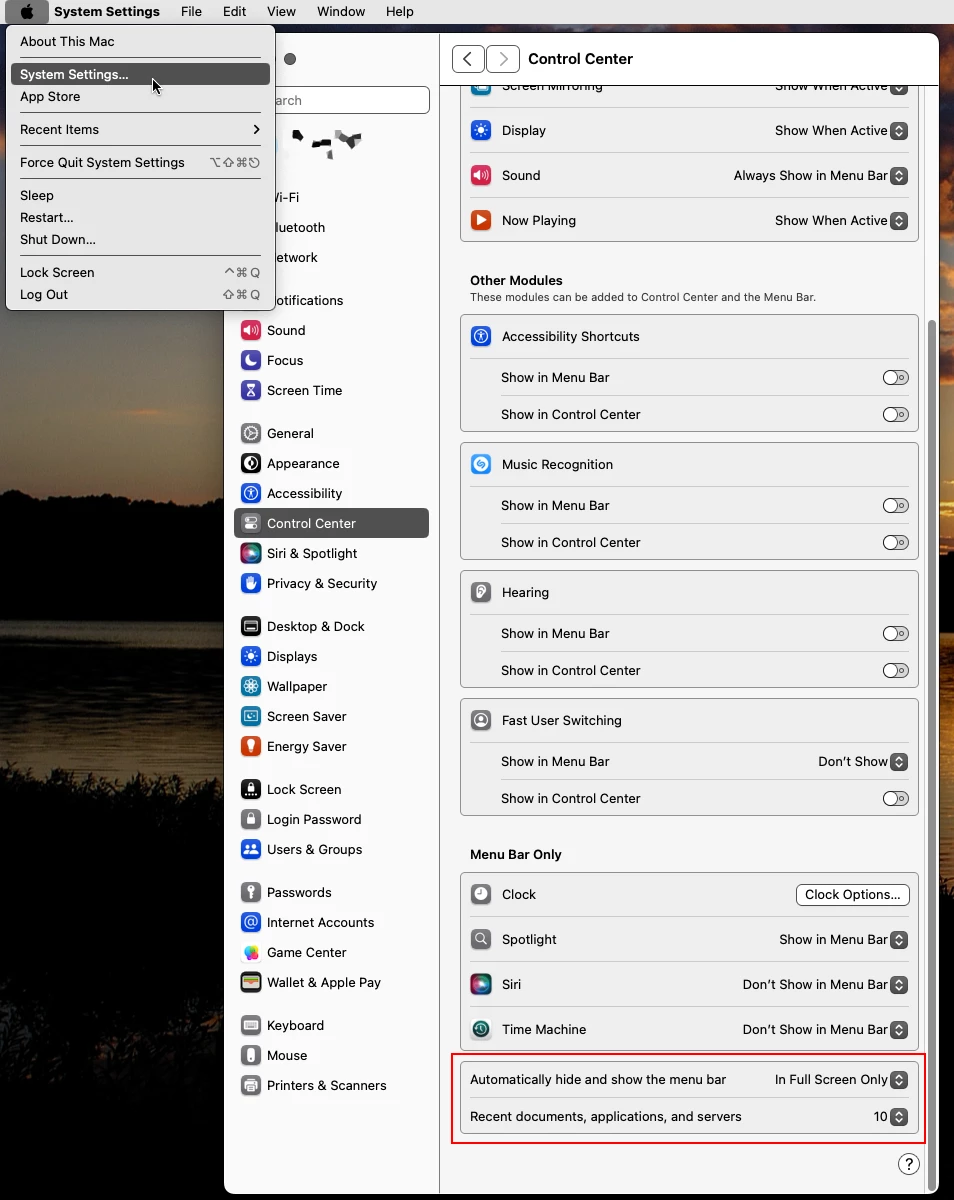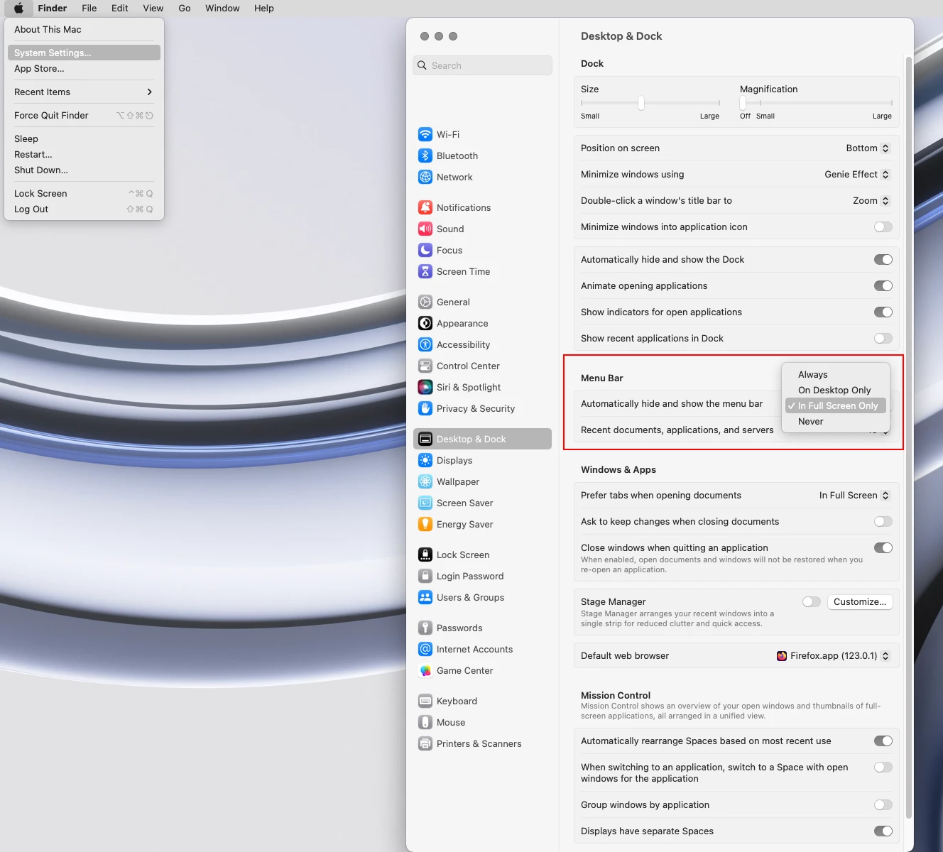 This makes it quite useless for day-to-day work - I use my menus all the time, and I don't want to have to keep switching in and out of fullscreen mode.