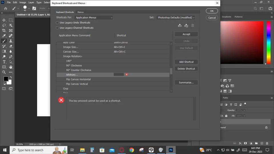Can someone please tell me why I can't use letters as a shortcut key for Application Menu and Panel Menu? Or is it just how Photoshop works? Because in CSP, I can use the keyboard letters on any tool that I want. This is pretty annoying since I use some of my pentab's buttons and dial for the shortcuts in CSP. But if I can't do the same in Photoshop, then it'll be a big problem. Please help.