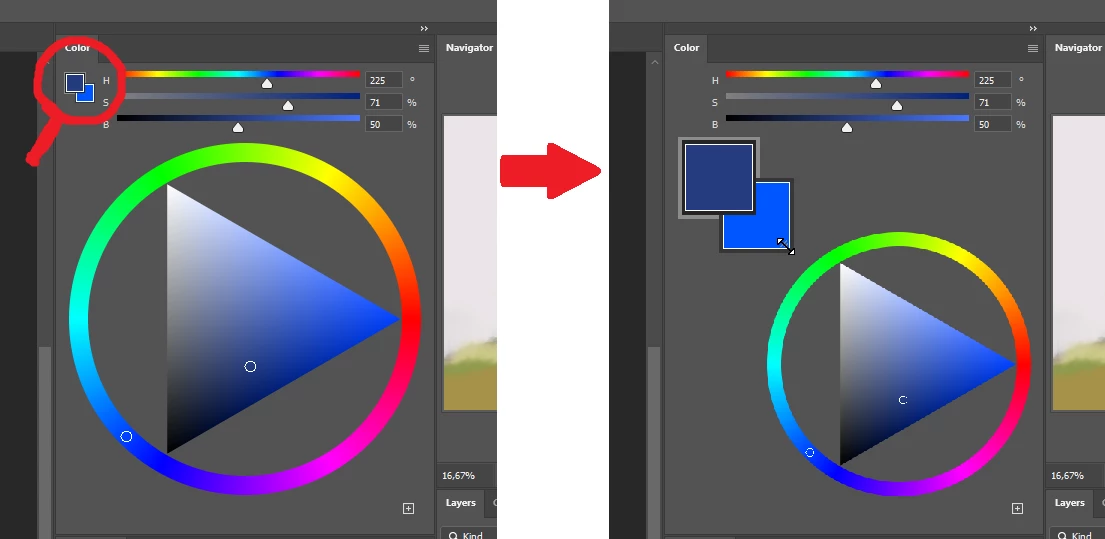 I wish I could scale the preview of selected foreground/background colors with click&drag.