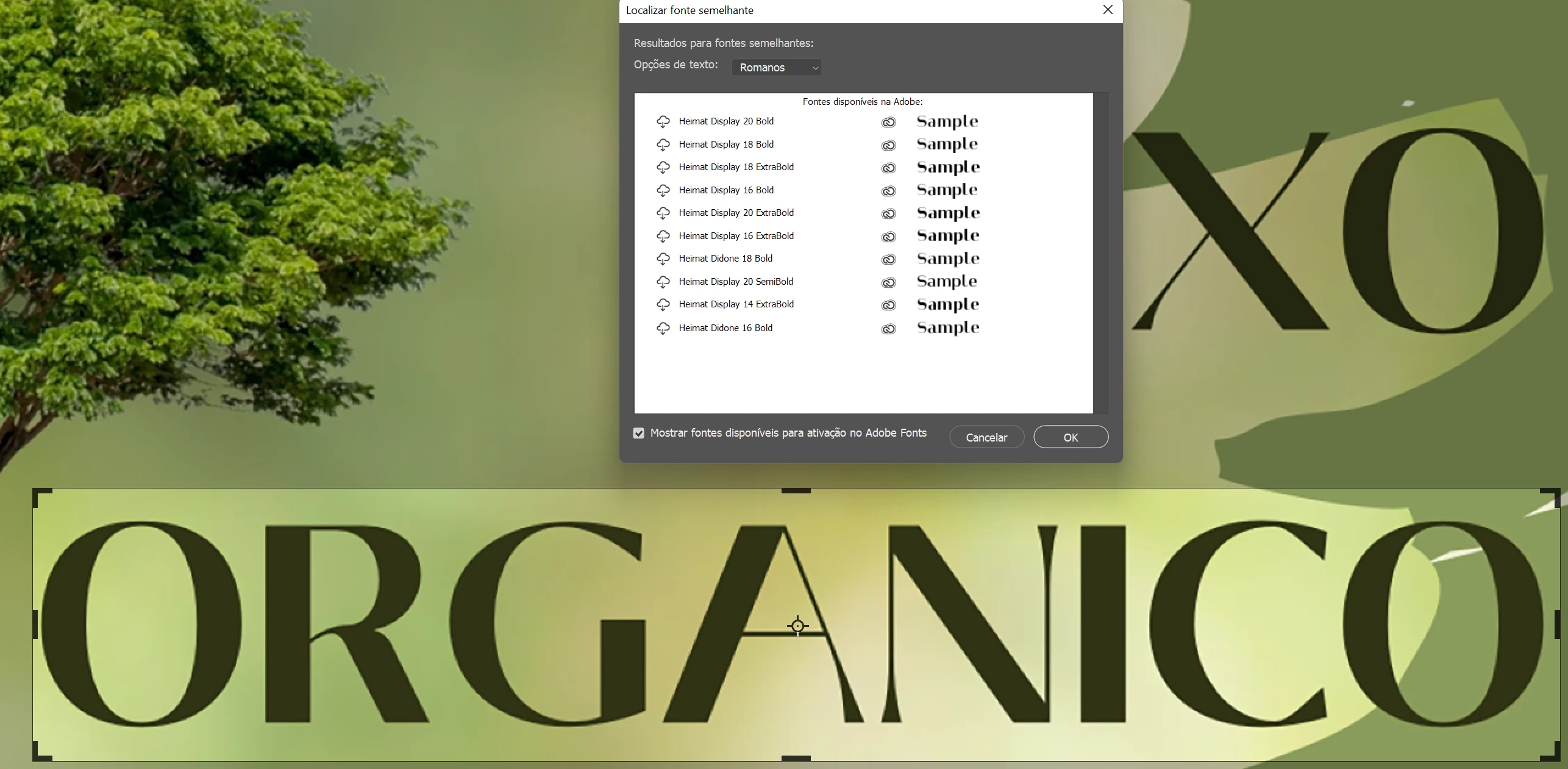 Localizar fonte semelhante - Texto de exemplo "Sample"