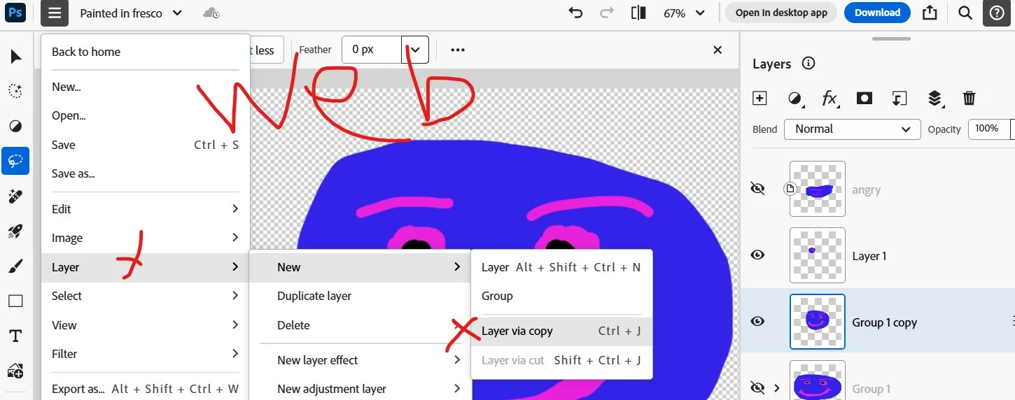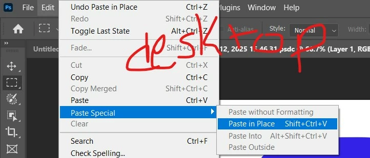 missing 'Paste in Place' for web app Photoshp