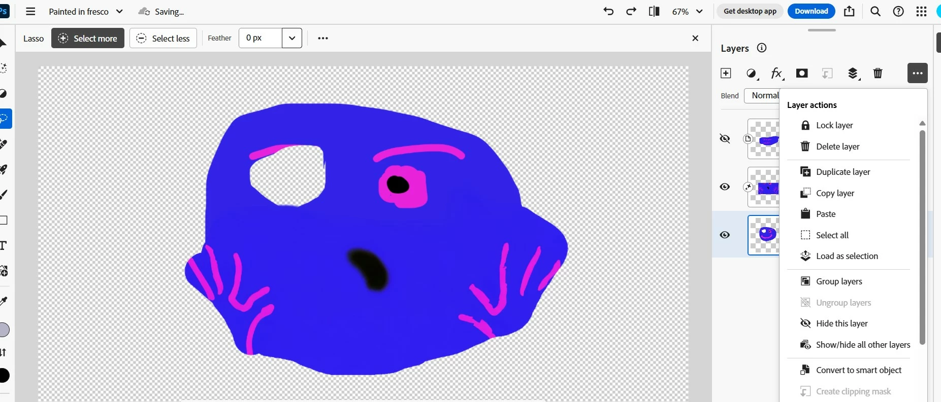 I am cuting and pasting parts of my image for puppet work for Adobe CH Animator. I cannot find the 'paste in place' option in the web version of Photoshop.