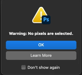 Option to NEVER SHOW AGAIN "Warning: No pixels are more than 50% selected..."