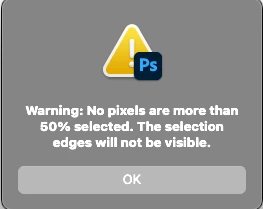 Option to NEVER SHOW AGAIN "Warning: No pixels are more than 50% selected. The selection edges will not be visible."