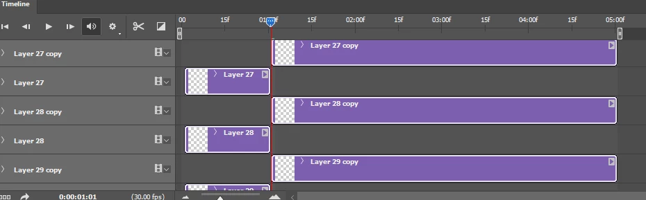 Hi I am animating an image in photoshop and all layers need to be the same length. I can't for the life of me figure out or find an answer for how to change the duration of multiple layers at the same time. When I have them all selected and drag it only change one layer. If I select them all move the play cursour to the frame i want to cut on and click the cut button it does this insanity for some reason: