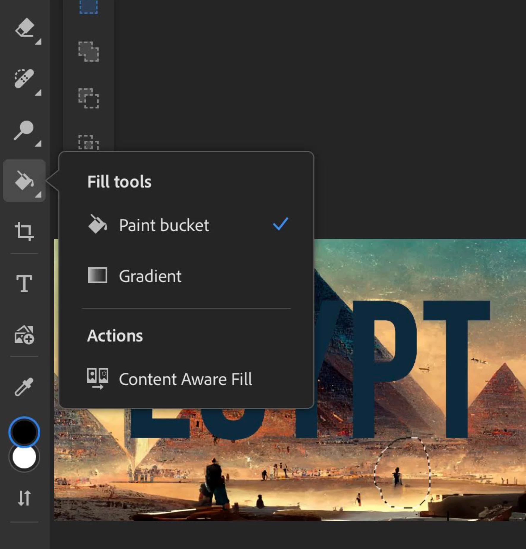 In Ps for iPad, you can make selection and from the paint bucket tool choose "Contenet Aware Fill"