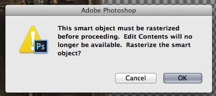Its nice that Photoshop warns me that I cant make changes to a smart object with the clone stamp tool and asks if id like to rasterize it, but why does it pop up yet another warning I have to click threw to confirm that I do not want to rasterize my smart object. Could we limit the amount of pop u warnings to just one? Just a thought.
