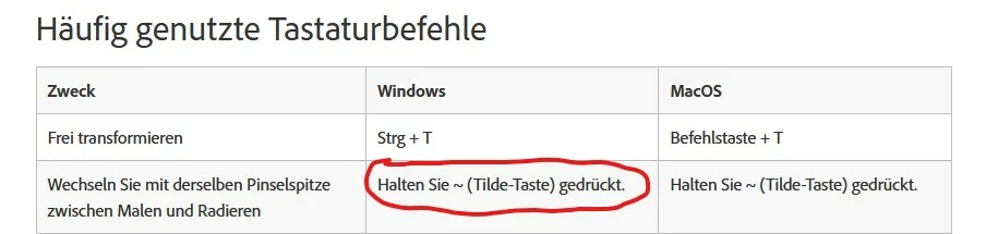 Als jemand, der Photoshop viel zum Malen benutzt, habe ich mich sehr über dieses neue Tastenkürzel in Photoshop 21.0.0 gefreut - das hat mir schon lange gefehlt. Leider, leider ist es auf der "Tilde-Taste" jedoch völlig nutzlos, denn diese gibt es auf einer deutschen Tastatur nicht. Für das ~ Zeichen müssen wir "alt gr" und "+" drücken, was in Photoshop einfach nur in das Bild zoomt. Ich konnte in den Tastenkürzel-Einstellungen nichts finden, um diese Funktion auf ein anderes Tastenkürzel zu legen.