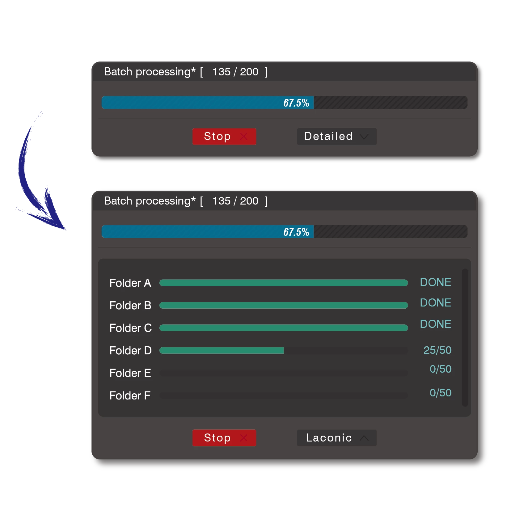 3.If we can set up a window to display the processing status of these files,Similar to the picture with appendix (i design a sample)