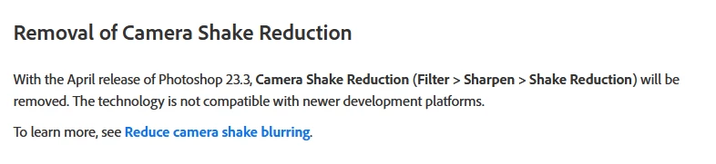 P: Bring back "Shake Reduction" filter - Removed in Photoshop v.23.3.0