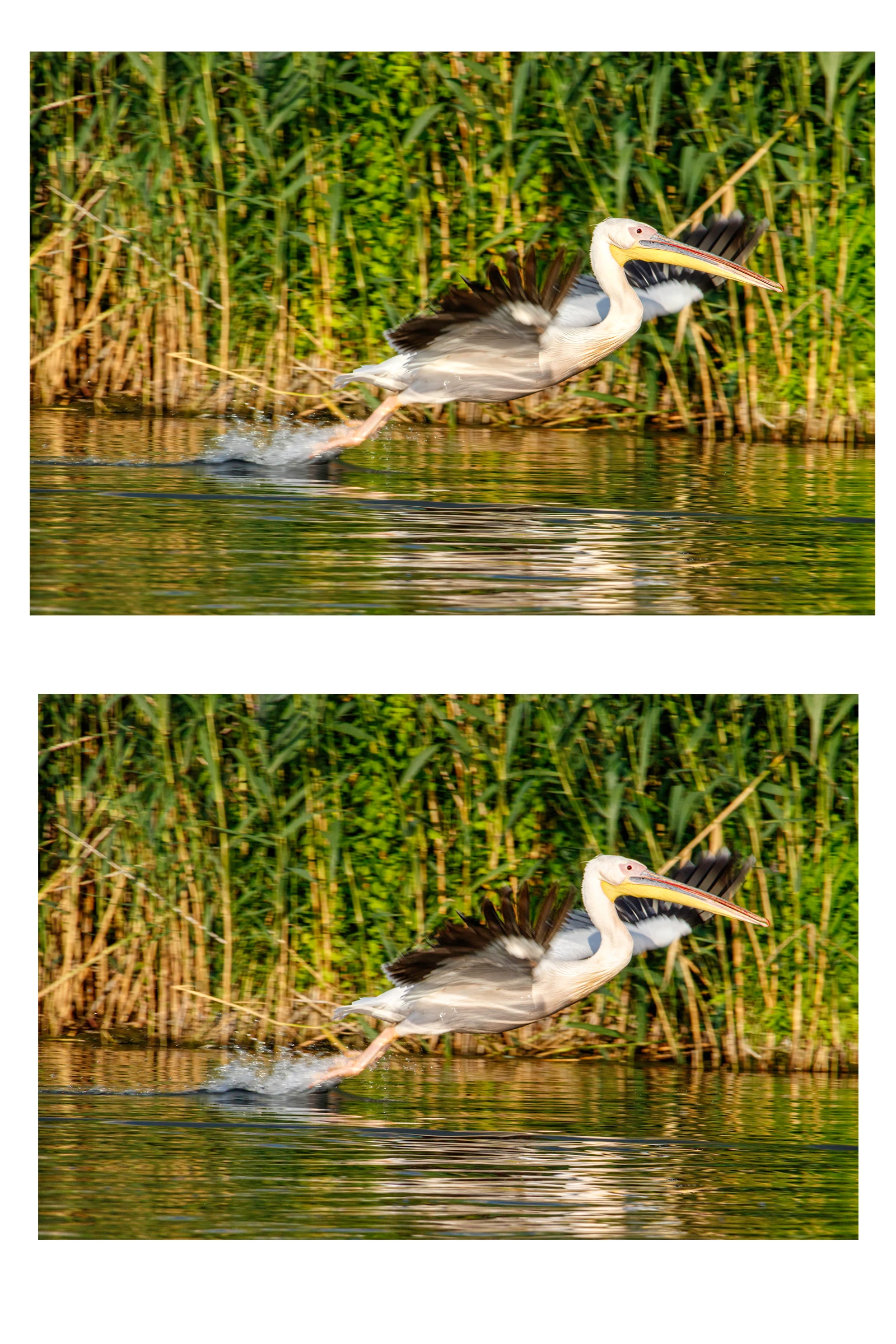 TX to this thread used Topaz AI clear-worked great. Then in PS copied head to new layer and applied High Pass. Worked wonderfully. Might have invest more in Topaz. Still love LR, but this panning shot had too much blur on head of Pelican. Topaz top /Orig bottom. Linda R