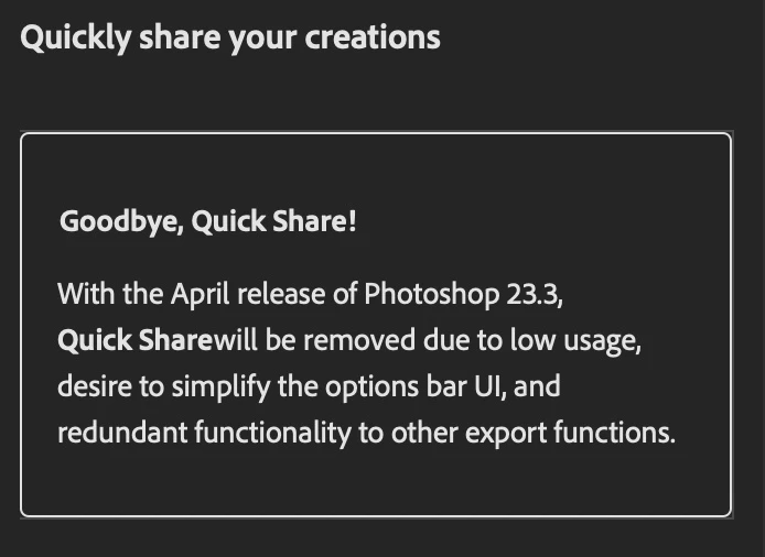 P: Bring Quick Share back to Photoshop (removed from 23.3)