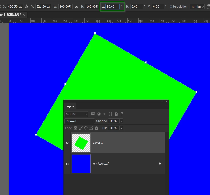 You can specify the exact angle of rotation with Free Transform.