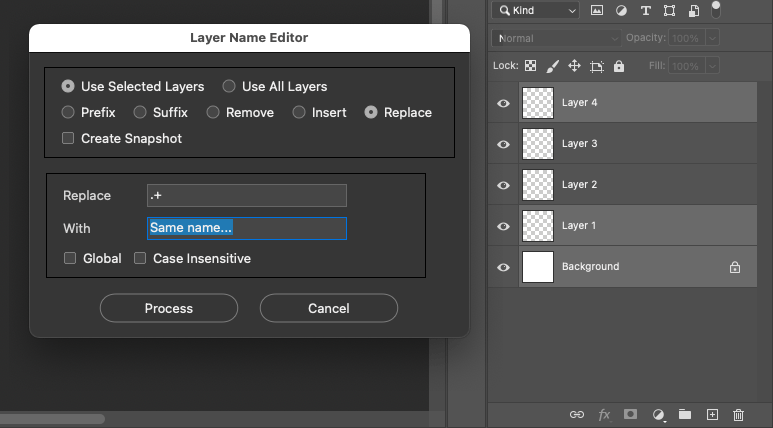 Renaming each individual layer is rather slow, what if we can rename all selected layers at once?