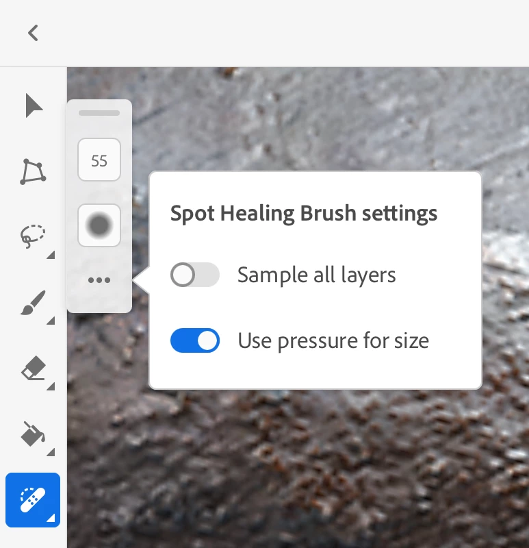 Does anyone know if the patch tool could be accessed on the iPad, my teacher is giving us assignments that we need to do on our iPads and one of the steps is to use the patch tool but I cannot find it. Is there any other tool I could use or is there a way to access the patch tool?