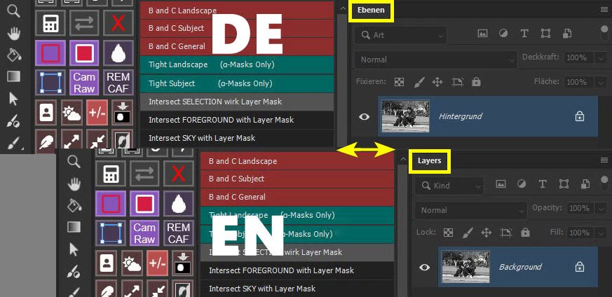 Photoshop Benutzeroberfläche - Einfluss der gewählten Sprache auf "Ebenen"-Fenster