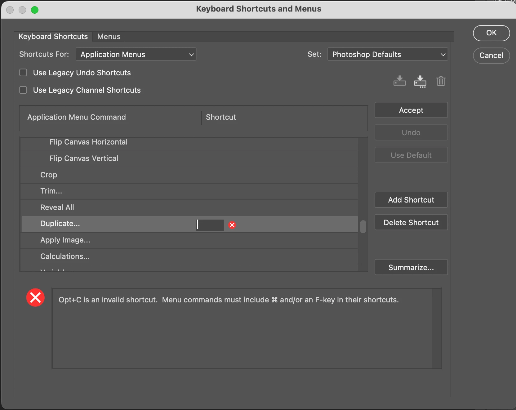 Photoshop Keyboard shortcut settings requires immediate upgrade