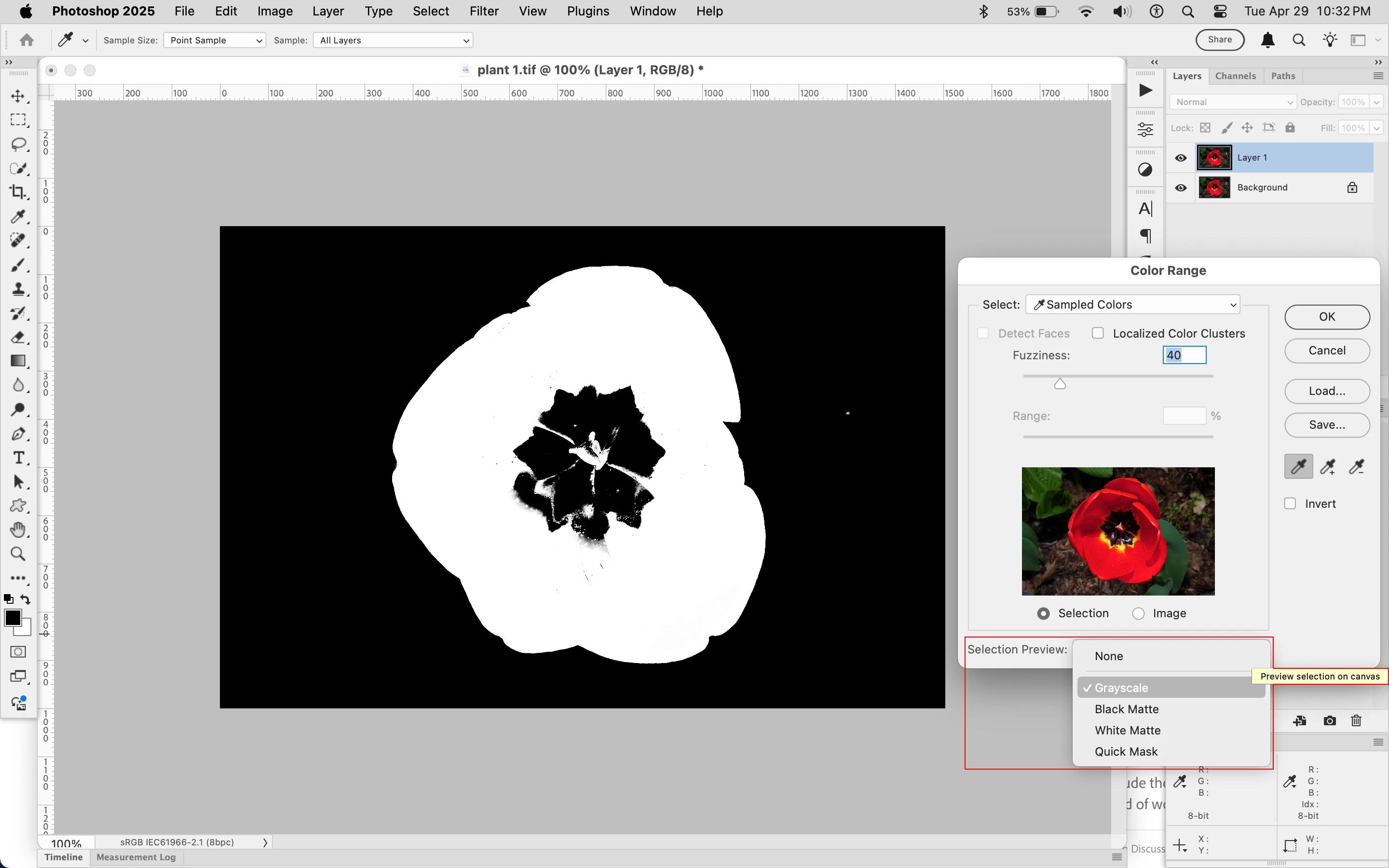 "Preview Selection" in Select > Color Range