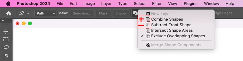 The default is “Exclude Overlapping Shapes” at the bottom.
