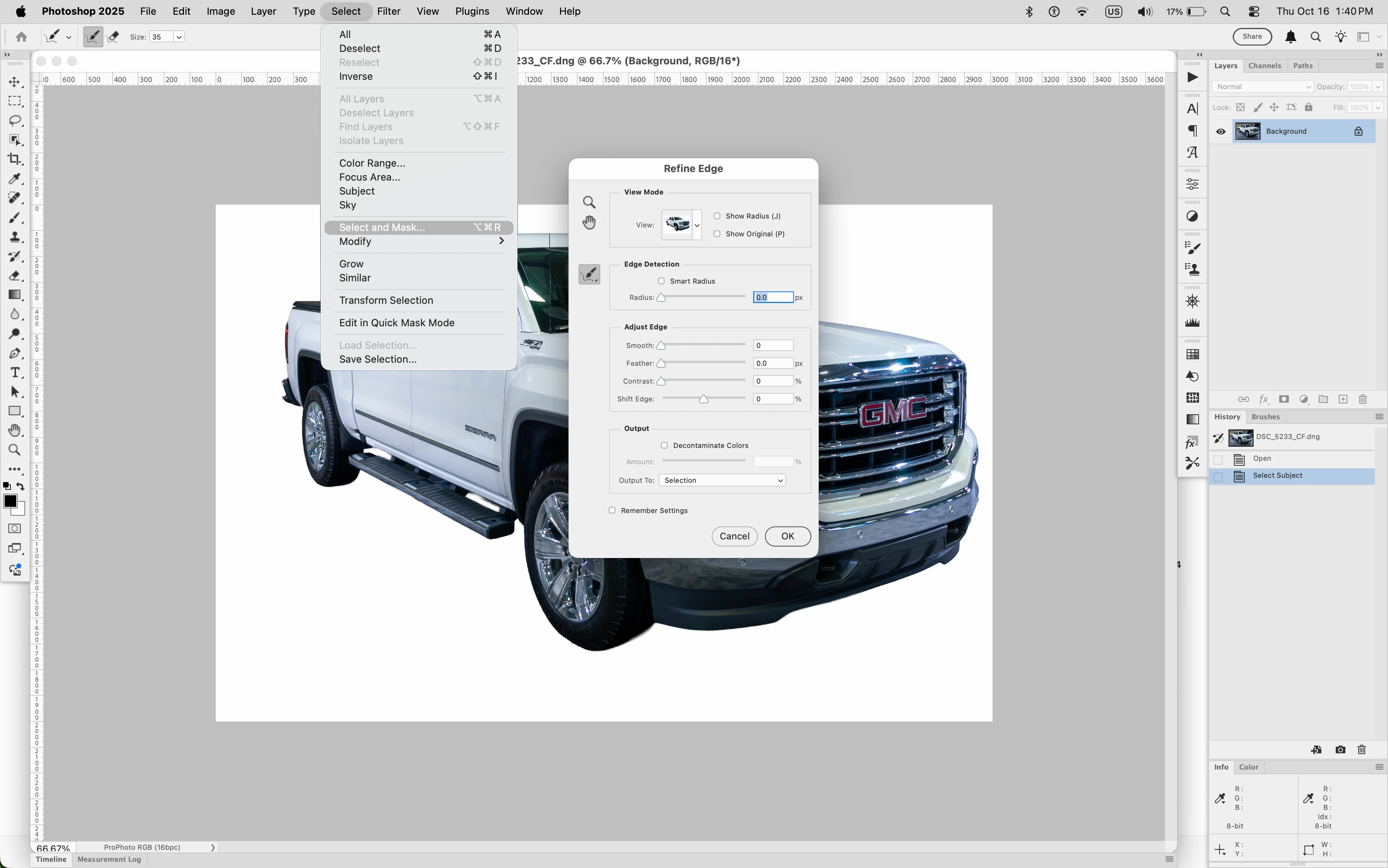 according to the instructions, refine is done in select and mask workspace which goes to a new window...