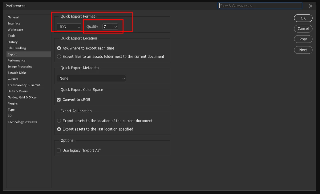 Issue: When using Export As… the quality is always set to 6.
