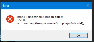 I just tested in Photoshop 2021 and 2024 and the script works as expected without error.