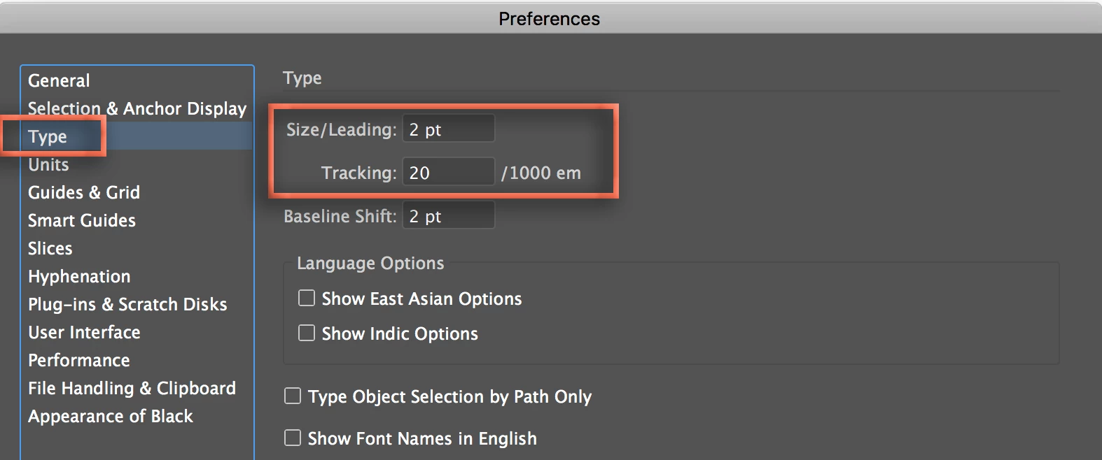 What I'd like to do is be able to adjust that amount, change the increment to say 5 units for finer control. I'm starting to design more and more on photoshop. I would love to be able to set type quickly, instead of entering values manually. It would be very useful to be able to set the kerning, tracking, and leading increments like those apps allow us to.