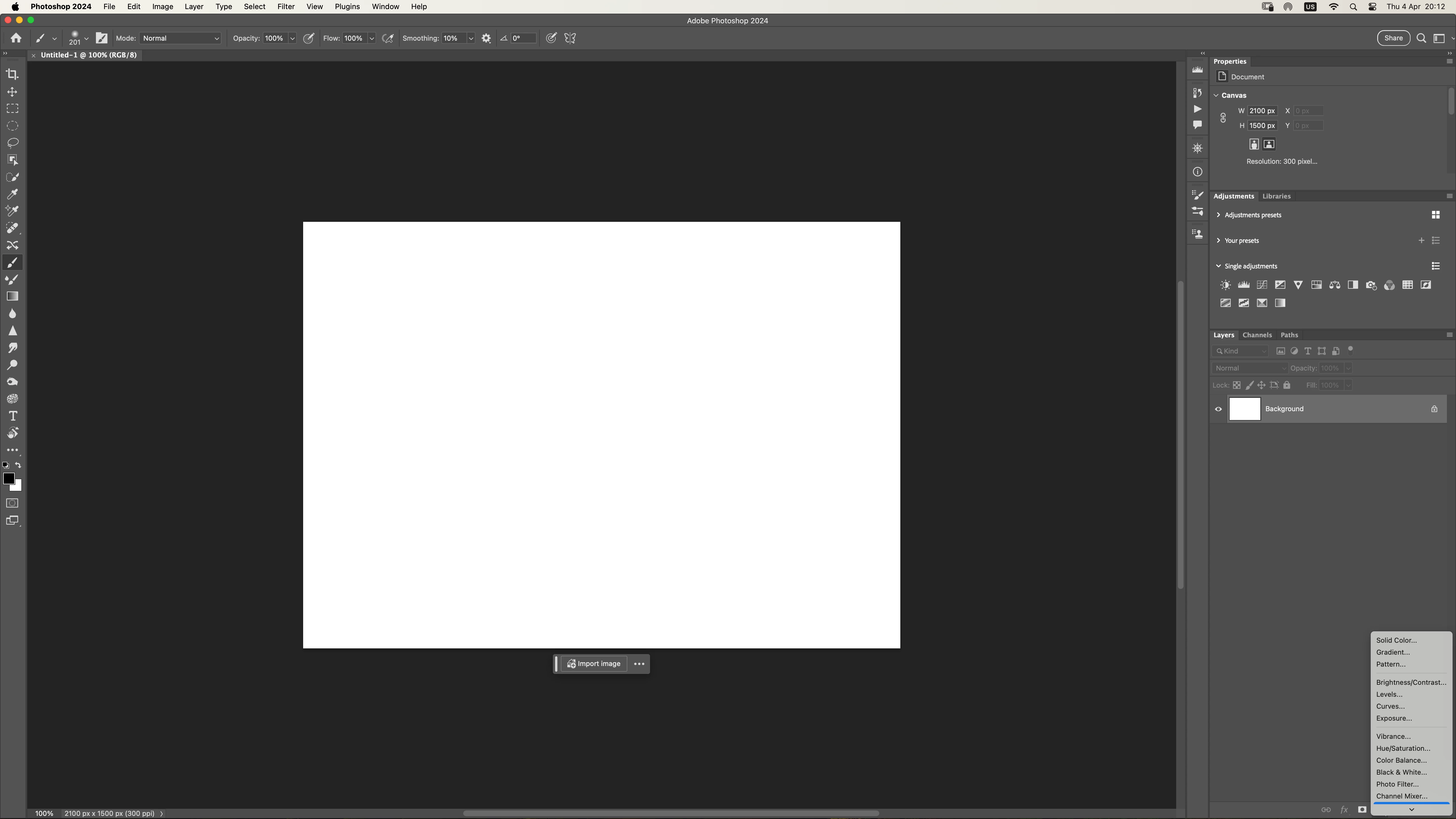 In macos, only the adjustments from Solid Color to Channel mixer shows when clicking the create new adj. layer button, to see all at once, one need to hover mouse on the down arrow. In previouse Ps verison all items showed.