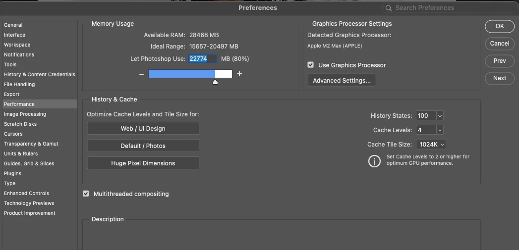 GPU: Apple M2 Max, GPU accessible RAM 26,800 MB