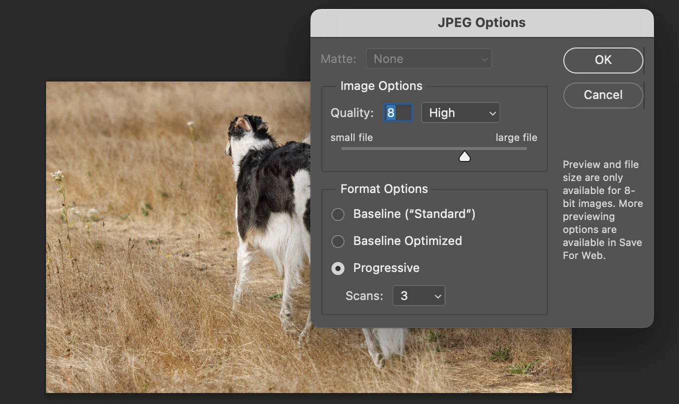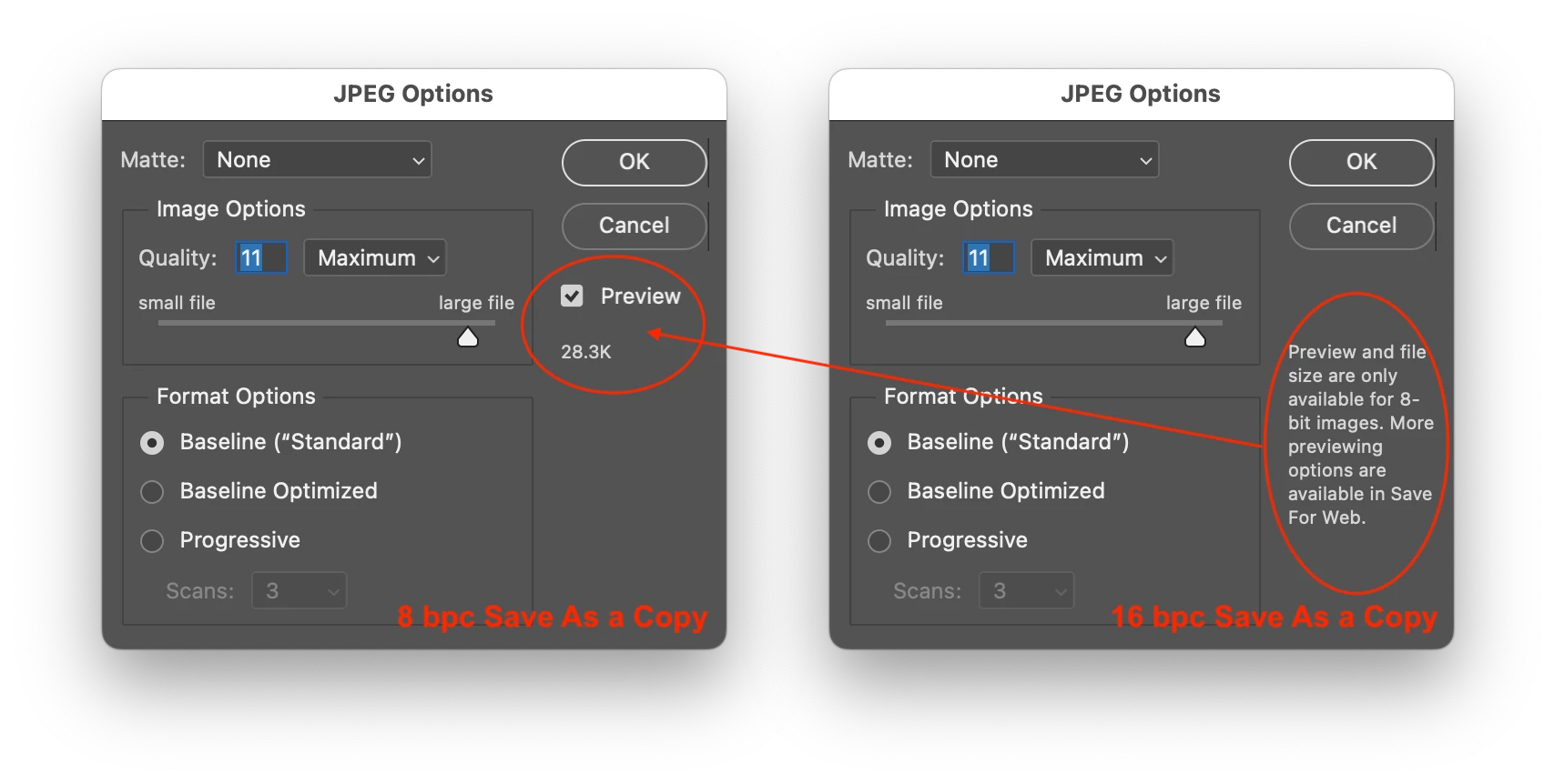 - JPEG is probably the most popular file format I use, saving to social media mainly and then other use online on the web. As my screen shot attests, there is more to this file format and I want to learn. For instance, the side note you see on the screen shot says that there is more to 'saving options' but I don't know how to acces this advanced saving criteria. Also, even what I have posted for a screen shot shows 'dimmed' areas that I don't know how to access even if I knew what they were for. Bottom line, I am sadly weak in my understanding of how to properly set up JPEG's for posting online, let alone for this file formats many other uses. Where can I get the wholde story on all of this file format's capabilities and control settings?
