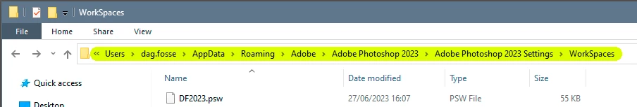 In Windows, Window>Workspace> "LOAD WORKSPACE" (you have New, Reset, Delete) but no way to Load/Transfer a workspace that you have been tweaking for a long time.... It does NOT make sense not to have a Load. import, something to make the transition easier as you Beta new photoshop... it should live there with the other workspace options.