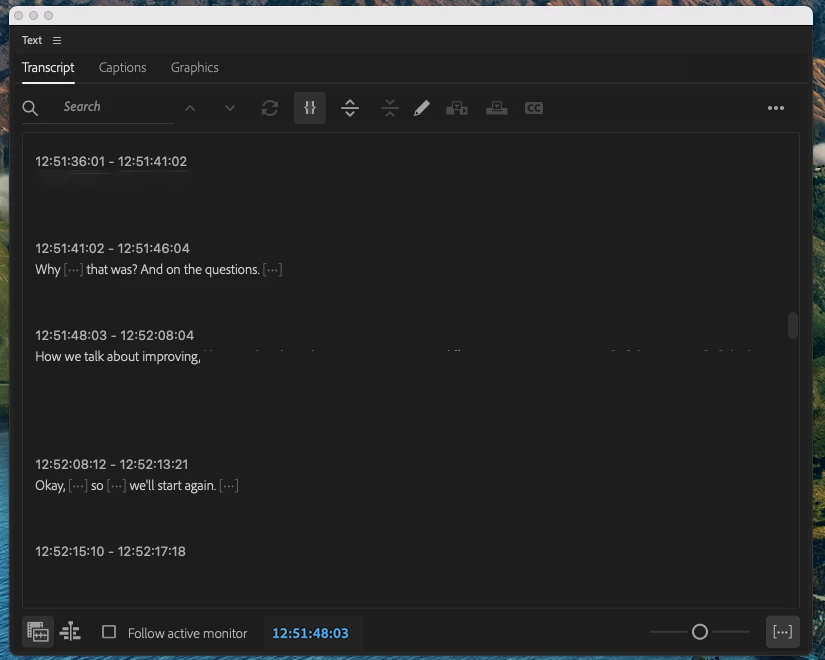 It would be helpful to have the playhead position to quickly jump to different timecodes when doing text to video editing. Love the new transcription feature, but I keep having to click back to the source viewer to punch in a timecode and switch back to text, which is time consuming (small laptop edit, so keeping both windows open is a pain).