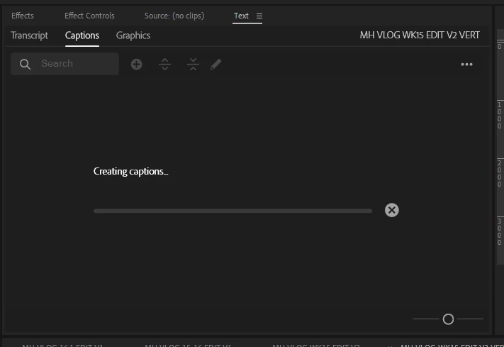 5. Create captions for the entire sequence because Premiere will ignore your in-out points.