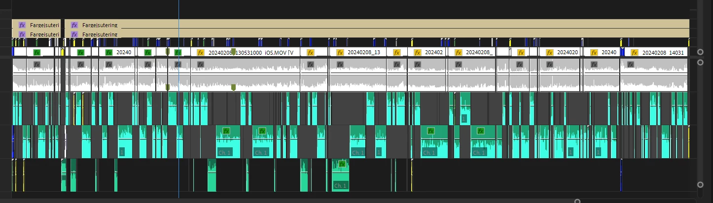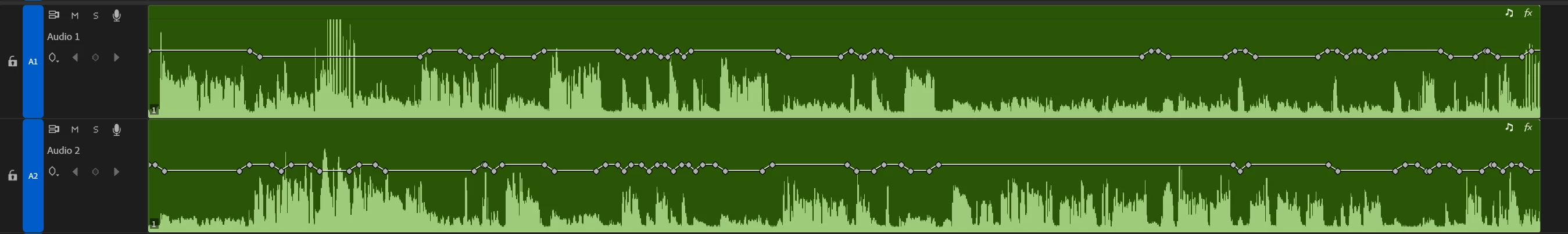 This is a screenshot of a client’s timeline of an interview with two microphones (track 1 and 2), and as you can see, they’ve done a lot of manual cutting back and forth between the tracks.