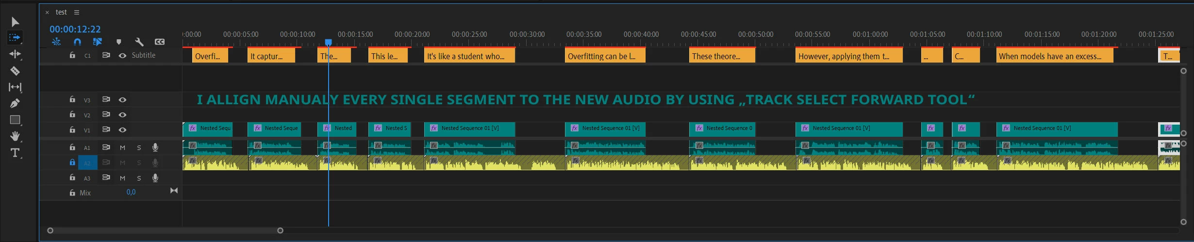 - Because the localized audio is often different in length from the original, I then adjust each segment individually, moving and matching it to the corresponding localized audio segment. (attached image_02.jpg)