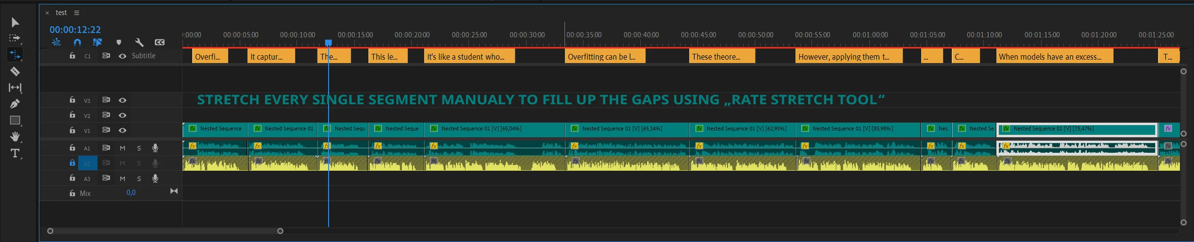 Auto-Stretch to Fit Empty Space: If possible, a shortcut that would automatically “stretch” each video segment to fill the corresponding empty space (similar to the “Extend Selected Edit to Playhead” function but with stretching instead of extending).