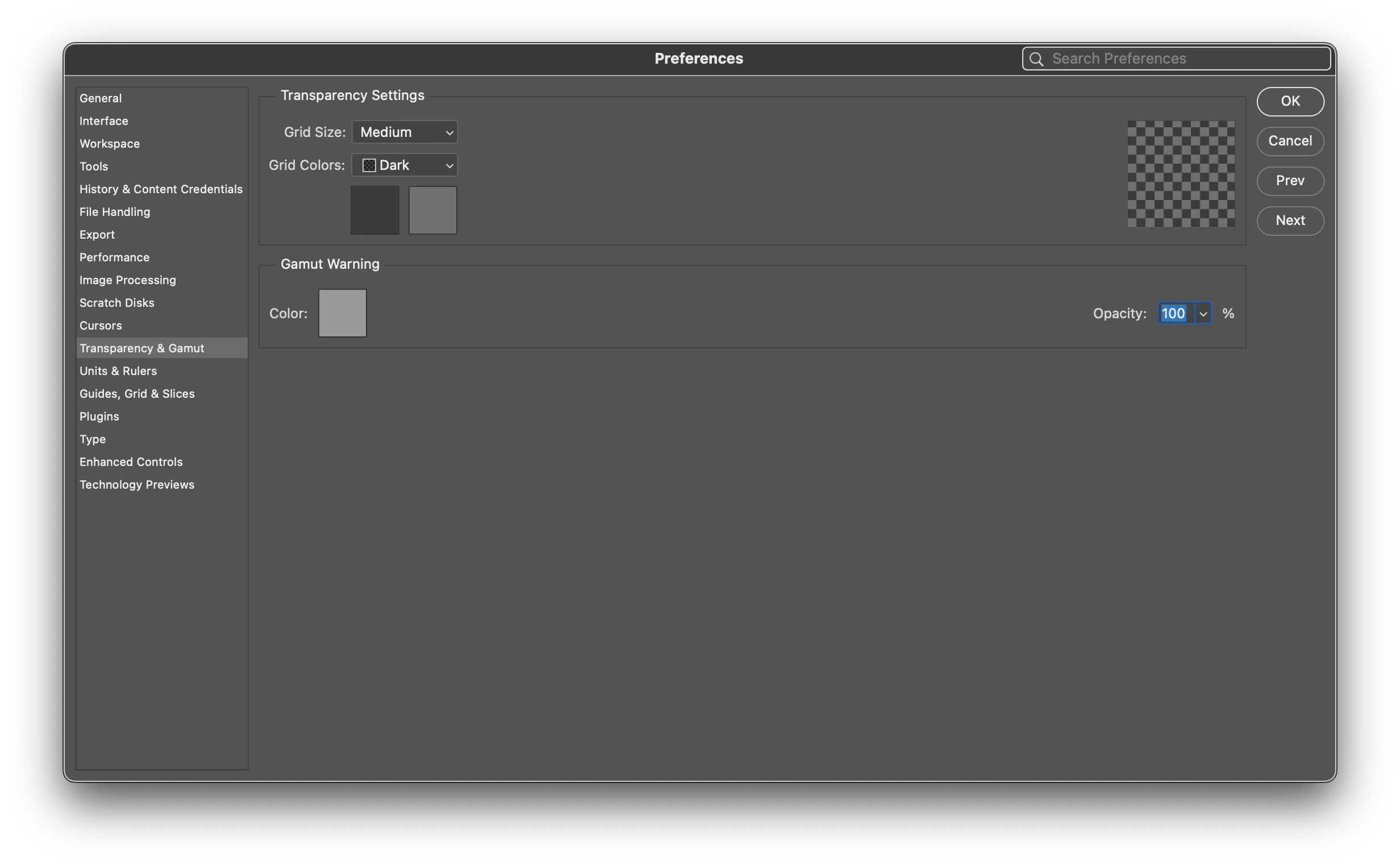Change the brightness of the transparency grid (like in Photoshop)