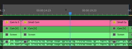 If you look at the timeline above, you will see 3 MOGRTs (in pink) and then a camera and screen track for the video.