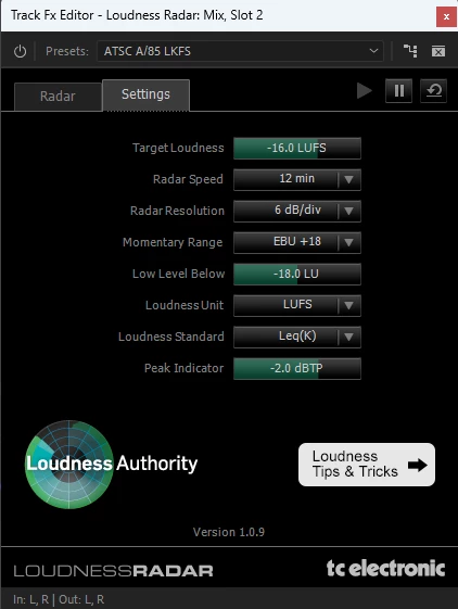 We could really use the ability to make custom presets for tools like the Loudness Radar.