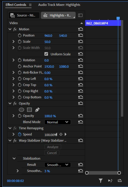 For eg, you'd just right click on Motion and toggle on/off the ones you don't want. Same with Opacity, Time Remapping and any additional effect you add on.