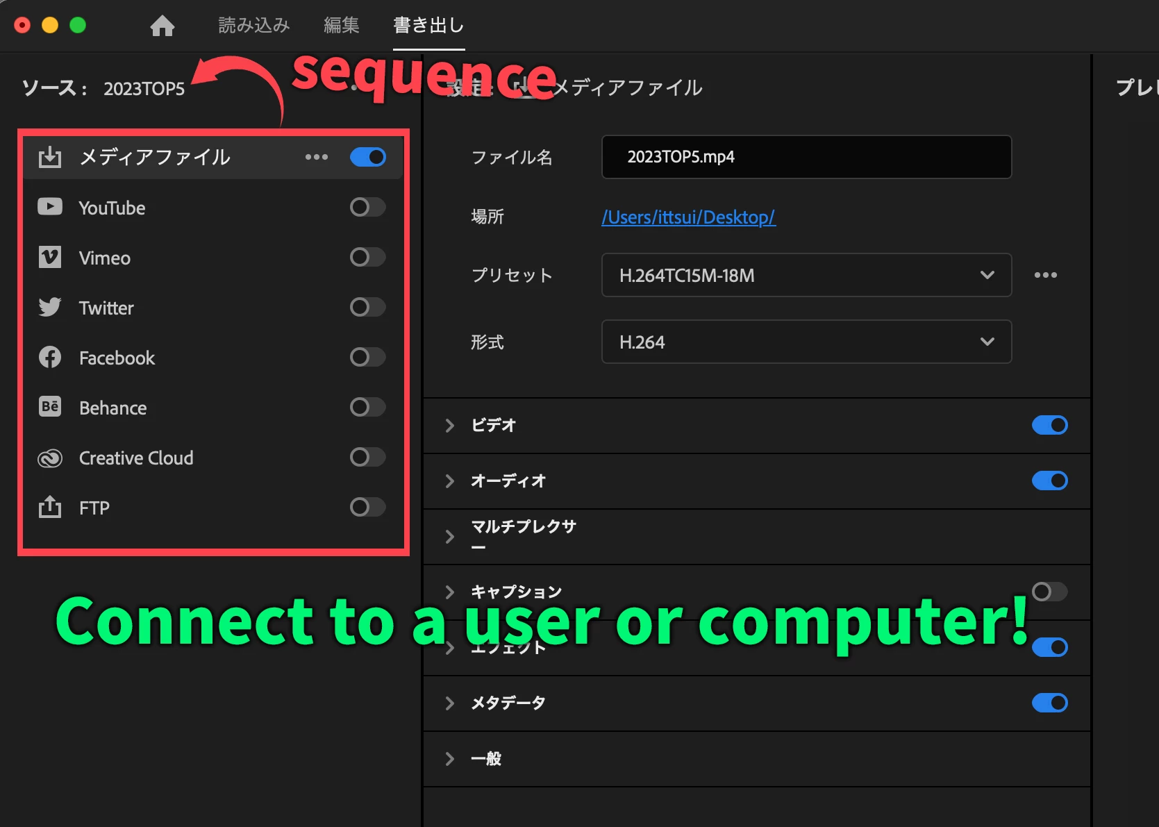 書き出しページの設定(メディアファイルなどのカスタム情報)が、シーケンスに紐づいている。シーケンスではなくユーザーに紐づいてほしい