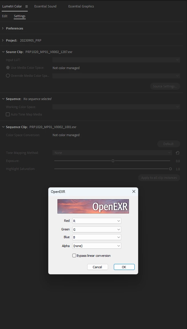 EXR Import Simplification and Lumetri Color Support